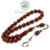 925 Ayar Gümüş Ayyıldız Püsküllü Eskitme Sıkma Kehribar Tesbih |