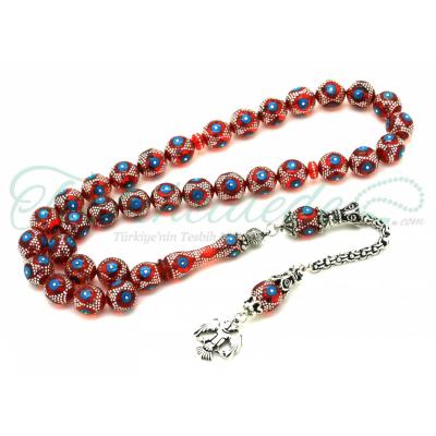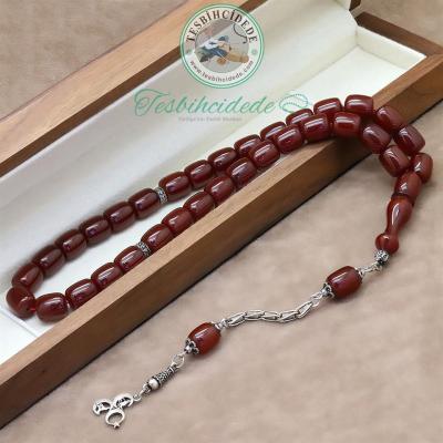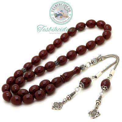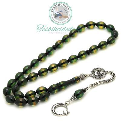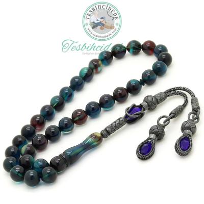 925 Ayar Gümüş Ayyıldız Püsküllü Rengarenk Sıkma Kehribar Tesbih |