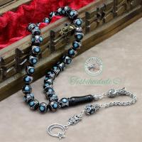 925 Ayar Gümüş Ayyıldız Tasarım Firuze İşlemeli Erzurum Oltu Taşı Tesbih |