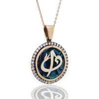 925 Ayar Gümüş Mavi Okyanus Sedef Taşlı Elif Vav Kolye |