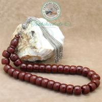 925 Ayar Gümüş Püsküllü Damarlı Büyük Sıkma Kehribar Tesbih |
