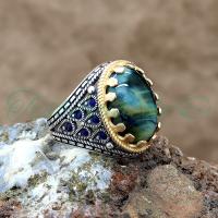 925 Ayar Gümüş Tasarım Labradorit Taşlı Erkek Yüzük |
