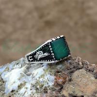 925 Ayar Gümüş Tuğra Tasarım Yeşil Akik Taşlı Erkek Yüzük |