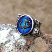 Elif Vav Yazılı Mineli Gümüş Erkek Yüzük |