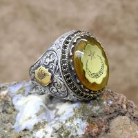 | Ürün Adı | Kelime-i Tevhid Yazılı Ayyıldız Kehribar Taşlı Gümüş Erkek Yüzük |