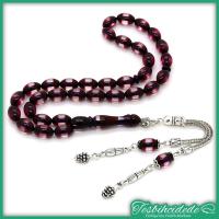 Koyu Kırmızı Sürmeli Toz Kehribar Tesbih |
