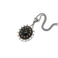 Tesbihci Dede atölyelerinde birinci sınıf işçilik ve oltu taşından imal edilen kolye, gümüş zincir ile süslenerek daha parlak ve dikkat çekici bir hale getirildi.