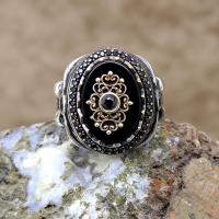 | Ürün Adı | Zirkon ve Oniks Taşlı Motifli Gümüş Erkek Yüzük |