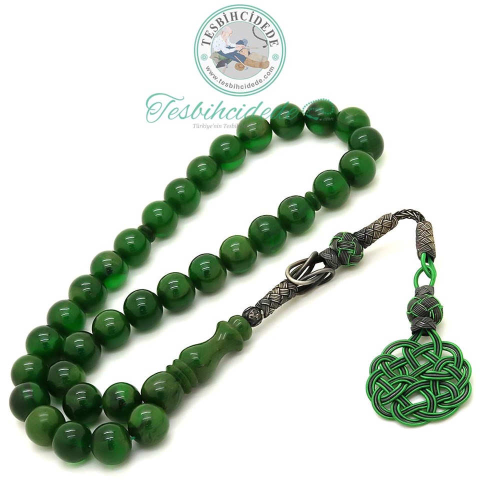 1000 Ayar Kazaz Püsküllü Yeşil Sıkma Kehribar Tesbih |
