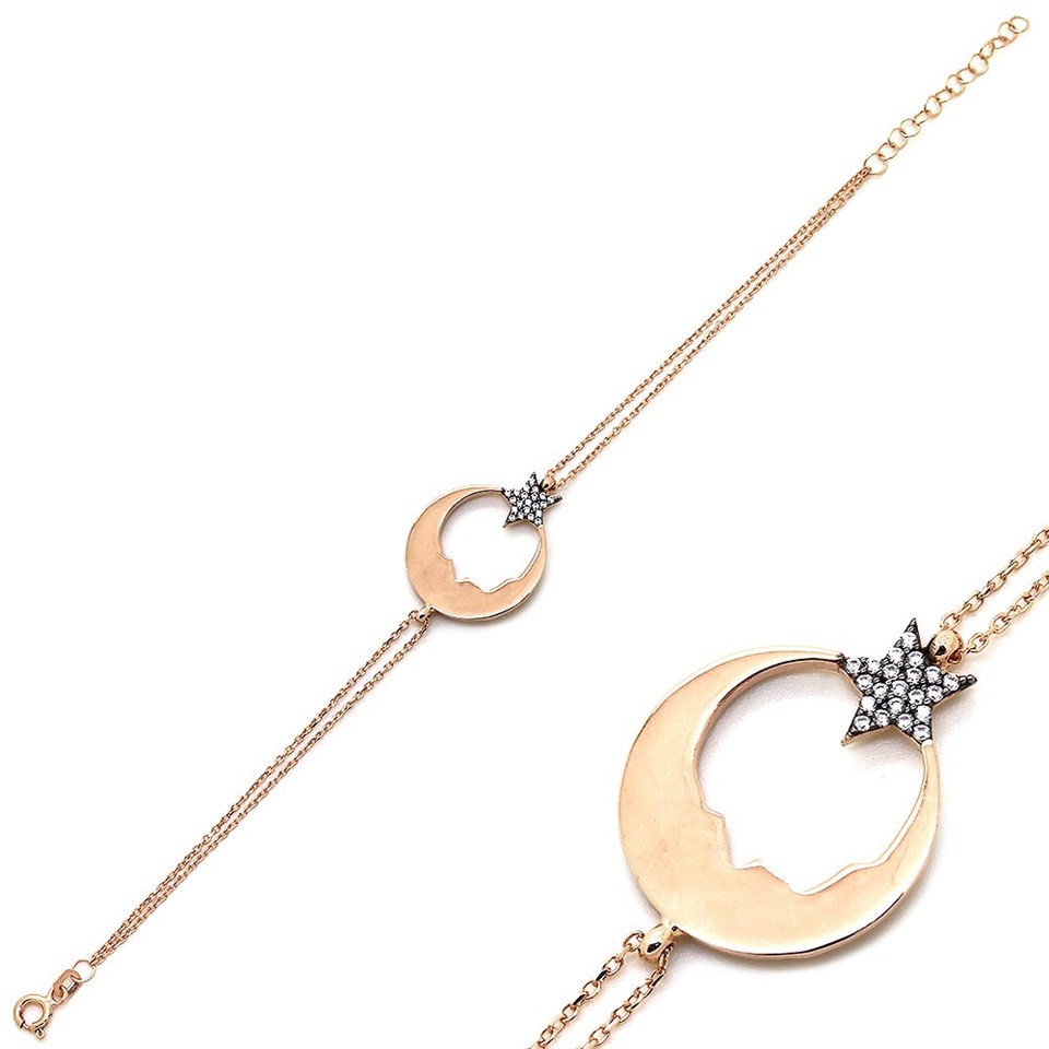 925 Ayar Gümüş Atatürk Silüetli Ayyıldız Bileklik |