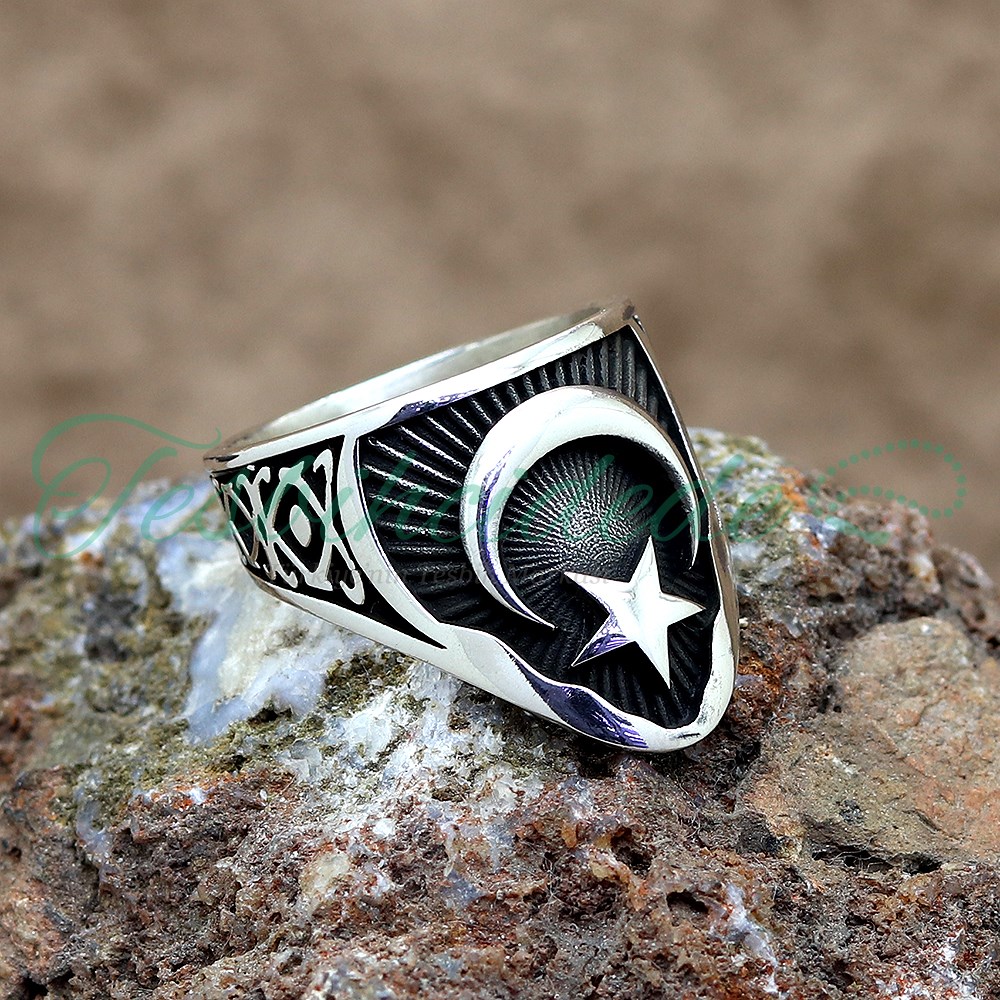 | Ürün Adı | 925 Ayar Gümüş Ay Yıldızlı Zihgir Erkek Yüzük |