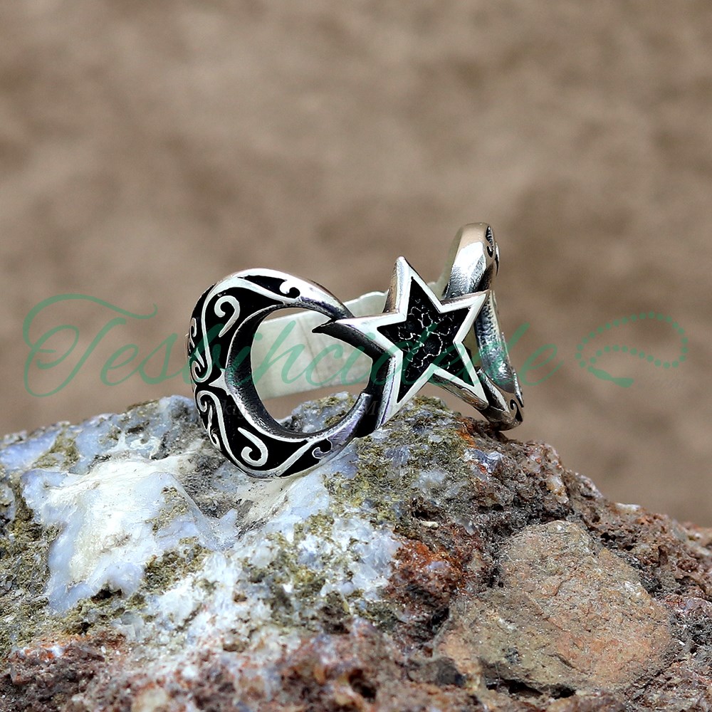 925 Ayar Gümüş Ayyıldız Erkek Yüzük |