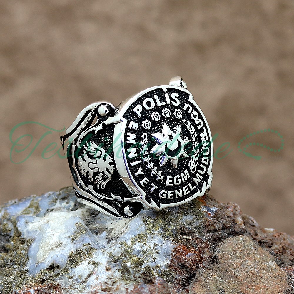 925 Ayar Gümüş Ayyıldız Polis (EGM) Erkek Yüzüğü |