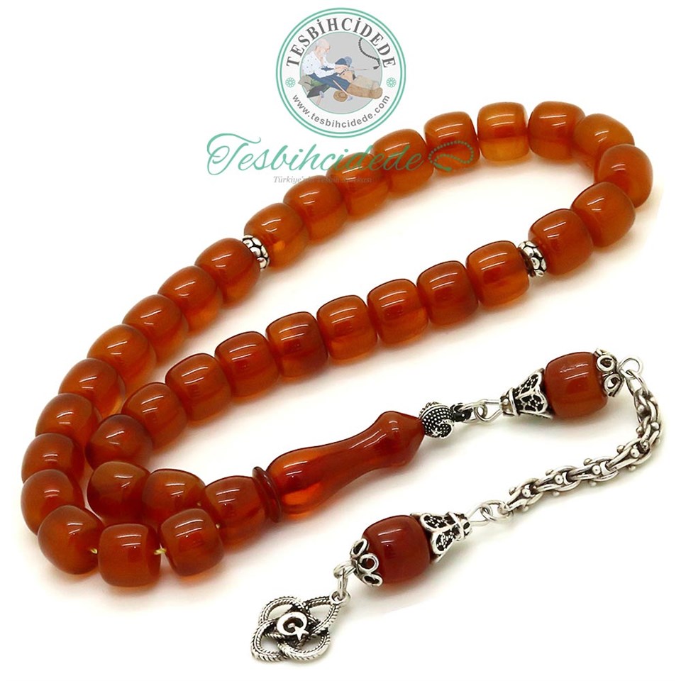 925 Ayar Gümüş Ayyıldız Püsküllü Kayısı Renkli Eskitme Sıkma Kehribar Tesbih |