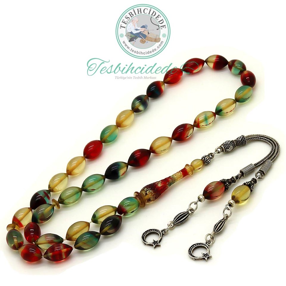 925 Ayar Gümüş Ayyıldız Püsküllü Renk Cümbüşü Sıkma Kehribar Tesbih |