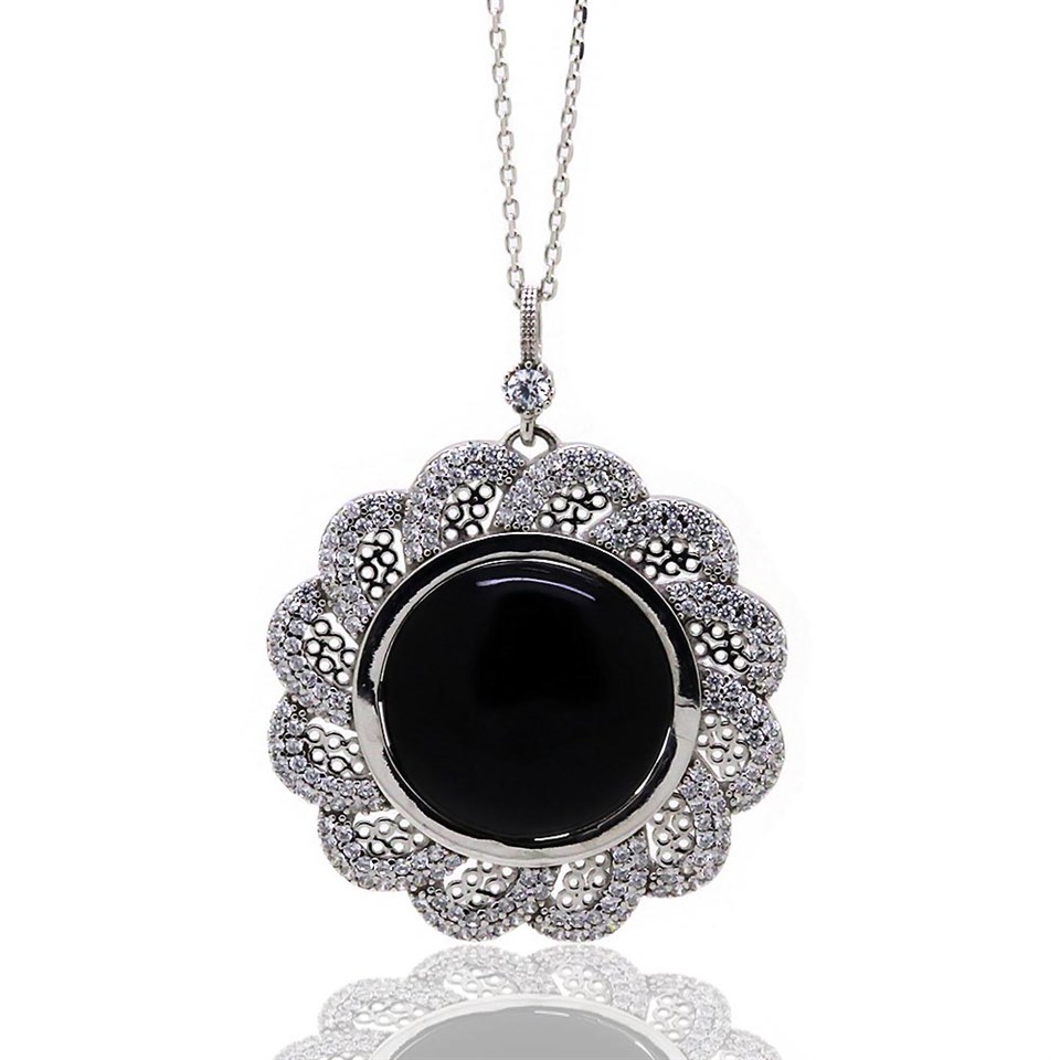 925 Ayar Gümüş Çiçek Model Oltu Taşı Kolye |