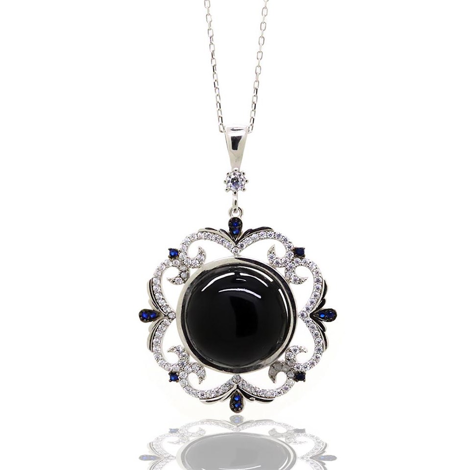 925 Ayar Gümüş Çiçek Tasarım Oltu Taşı Kolye |