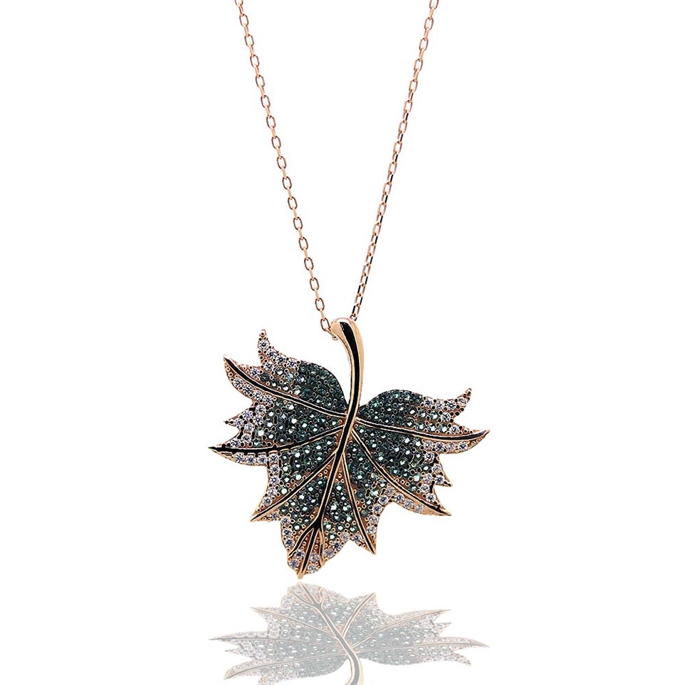 925 Ayar Gümüş Çınar Ağacı Yaprağı Hayalet Kolye |
