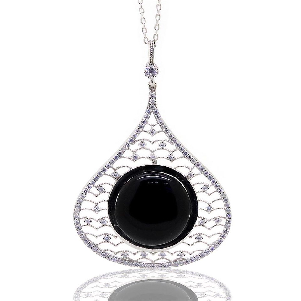 925 Ayar Gümüş Damla Model Oltu Taşı Kolye |