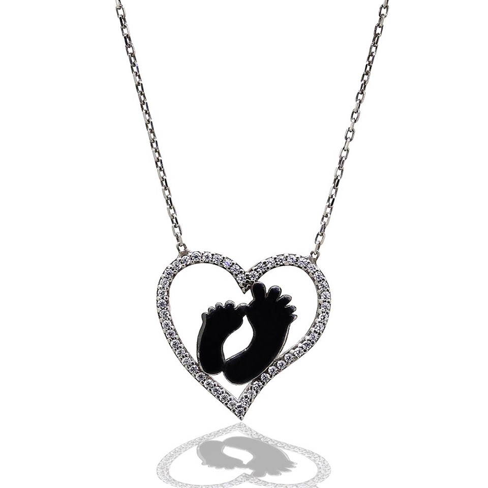 925 Ayar Gümüş Kalpli Bebek Ayak İzi Kolye |