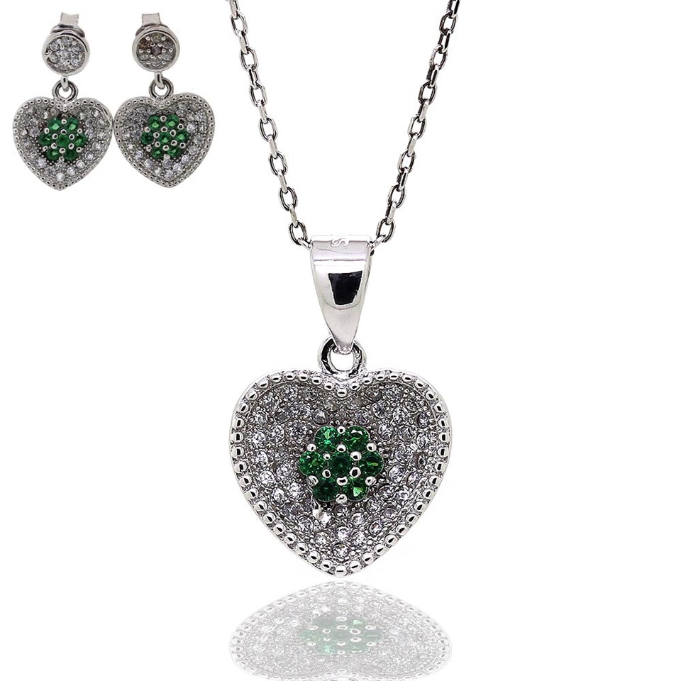 925 Ayar Gümüş Kalpli Küpe Kolye |