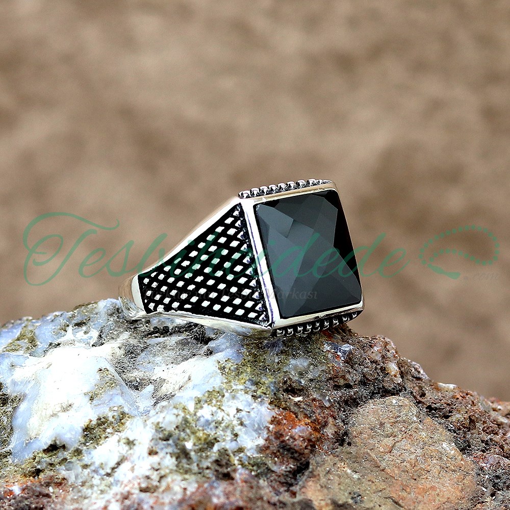 925 Ayar Gümüş Kare Zirkon Taşlı Erkek Yüzük |