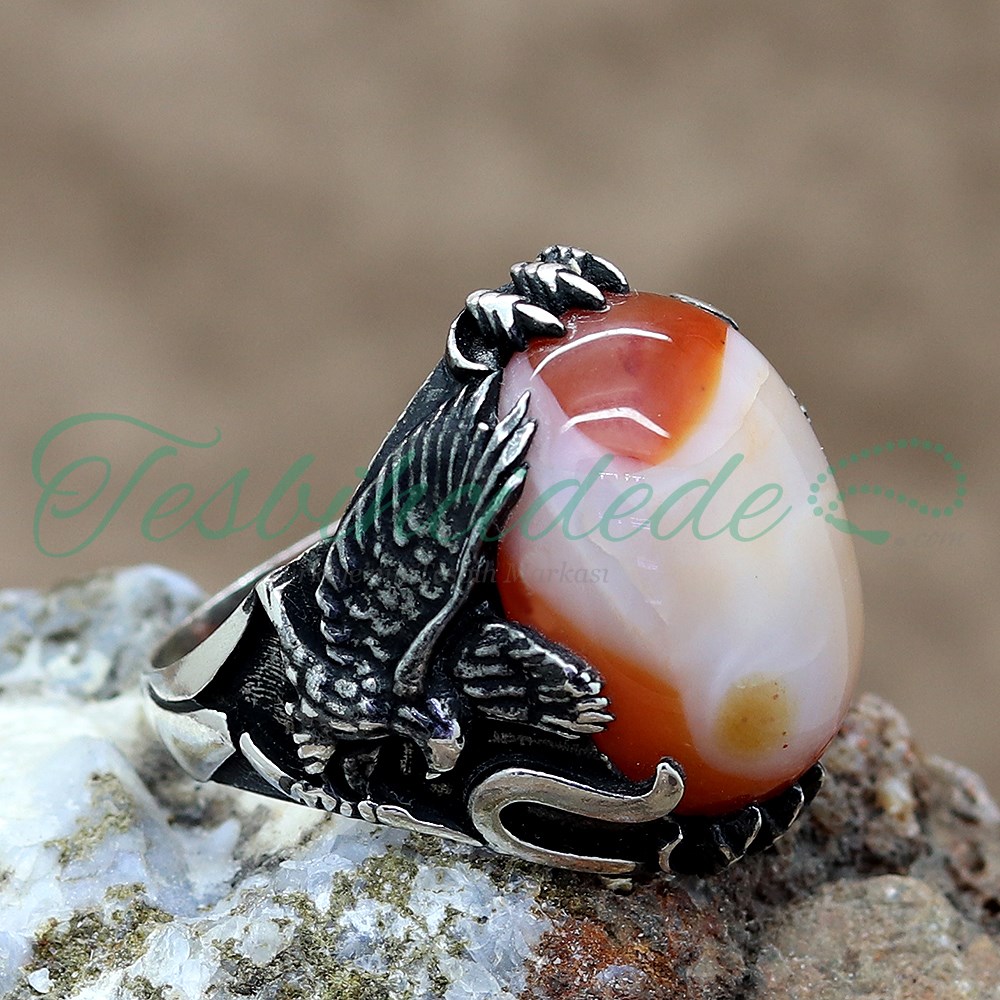 925 Ayar Gümüş Kartal Pençeli Akik Taşlı Erkek Yüzük |