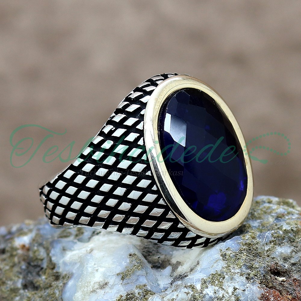 925 Ayar Gümüş Lacivert Zirkon Taşlı Erkek Yüzük |