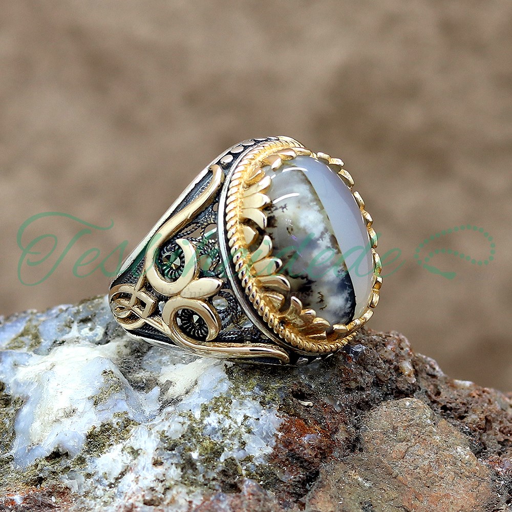 925 Ayar Gümüş Lale Tasarım Yemen Akik Taşlı Erkek Yüzük |