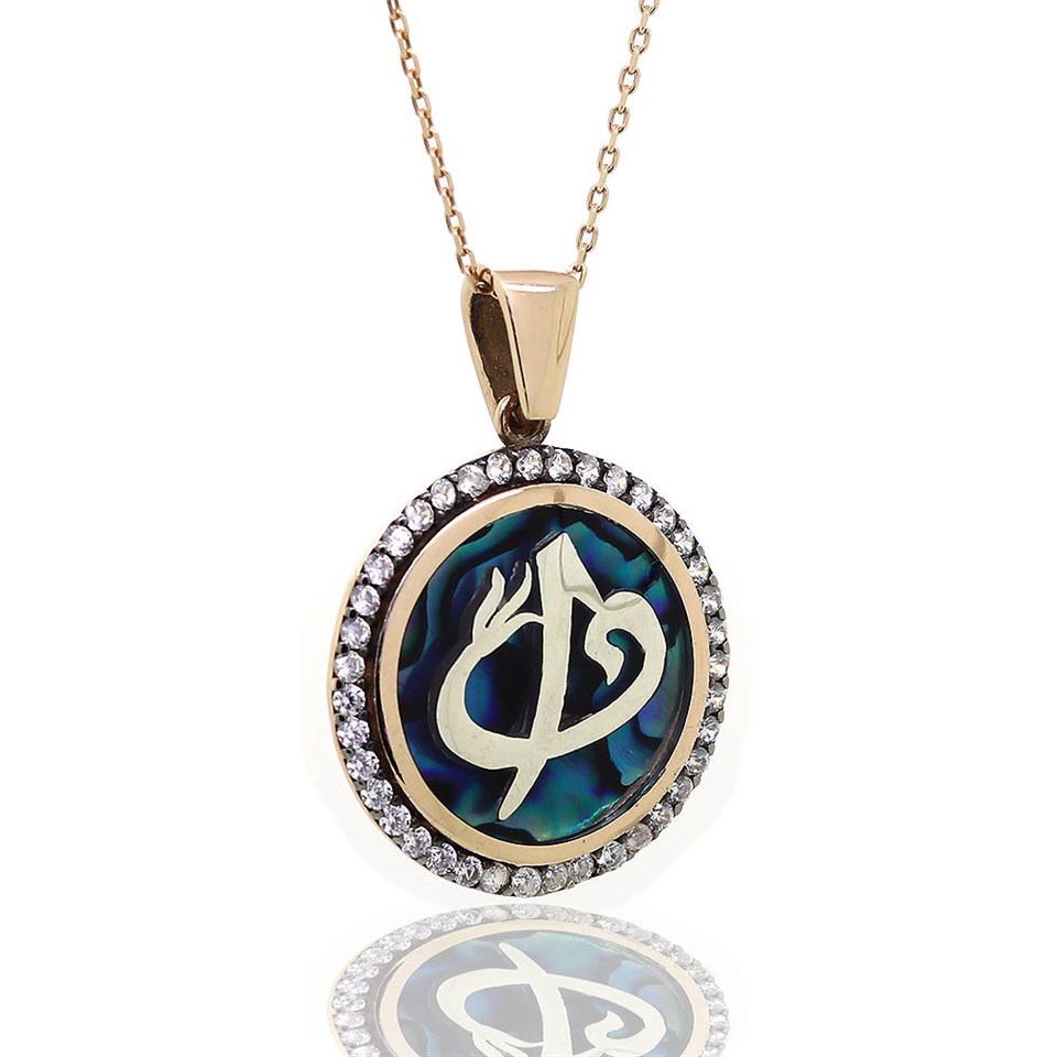 925 Ayar Gümüş Mavi Okyanus Sedef Taşlı Elif Vav Kolye |