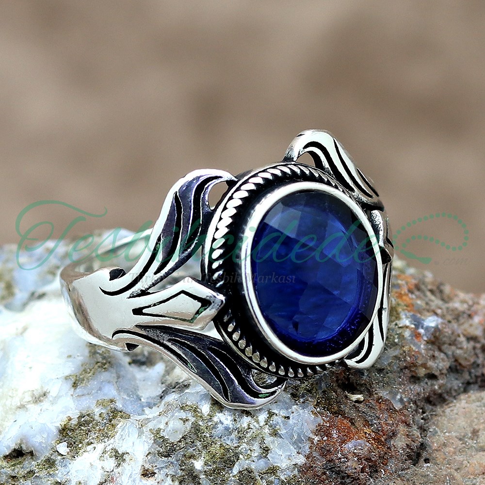 925 Ayar Gümüş Mavi Zirkon Taşlı Erkek Yüzük |