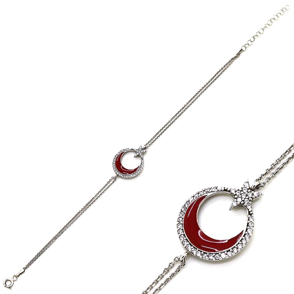 925 Ayar Gümüş Mineli Ayyıldız Bileklik |