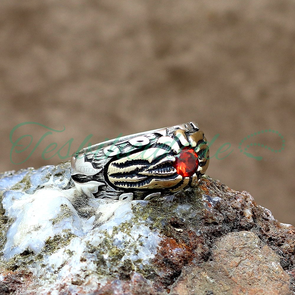 | Ürün Adı | 925 Ayar Gümüş Motifli Kırmızı Zirkon Taşlı Erkek Yüzük |