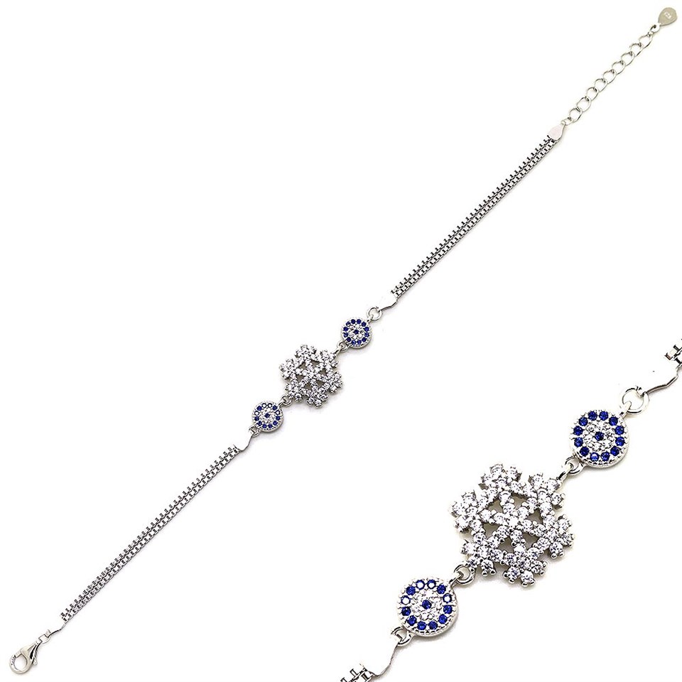 925 Ayar Gümüş Nazar Boncuklu Kar Tanesi Bileklik |