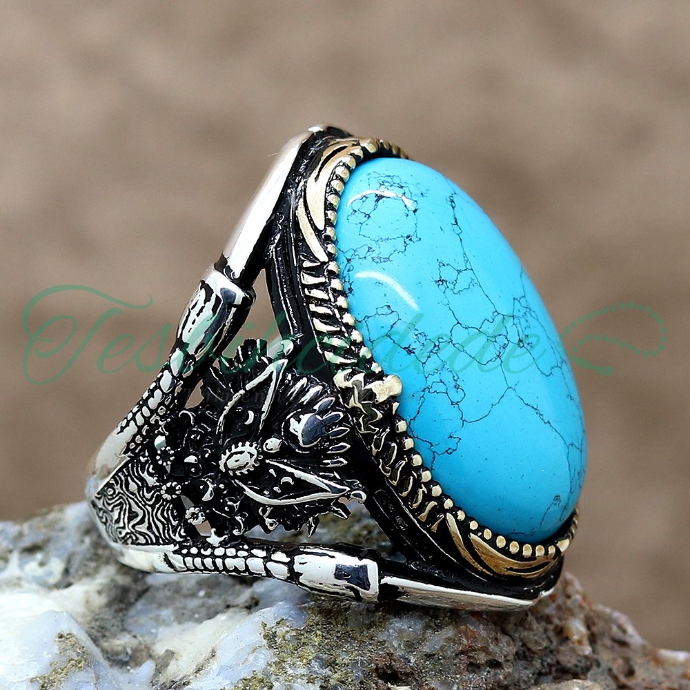 | Ürün Adı | 925 Ayar Gümüş Osmanlı Armalı Firuze(Turkuaz) Taşlı Erkek Yüzük |