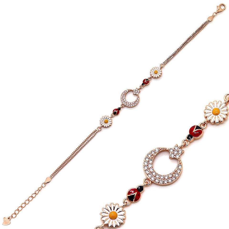 925 Ayar Gümüş Papatya Uğur böceği Ayyıldız Bileklik |