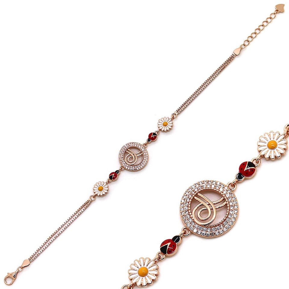 925 Ayar Gümüş Papatya Uğur böceği Tuğra Bileklik |