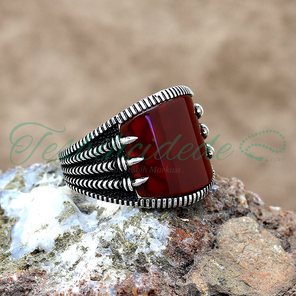 925 Ayar Gümüş Pençe Tasarım Akik Taşlı Erkek Yüzük |