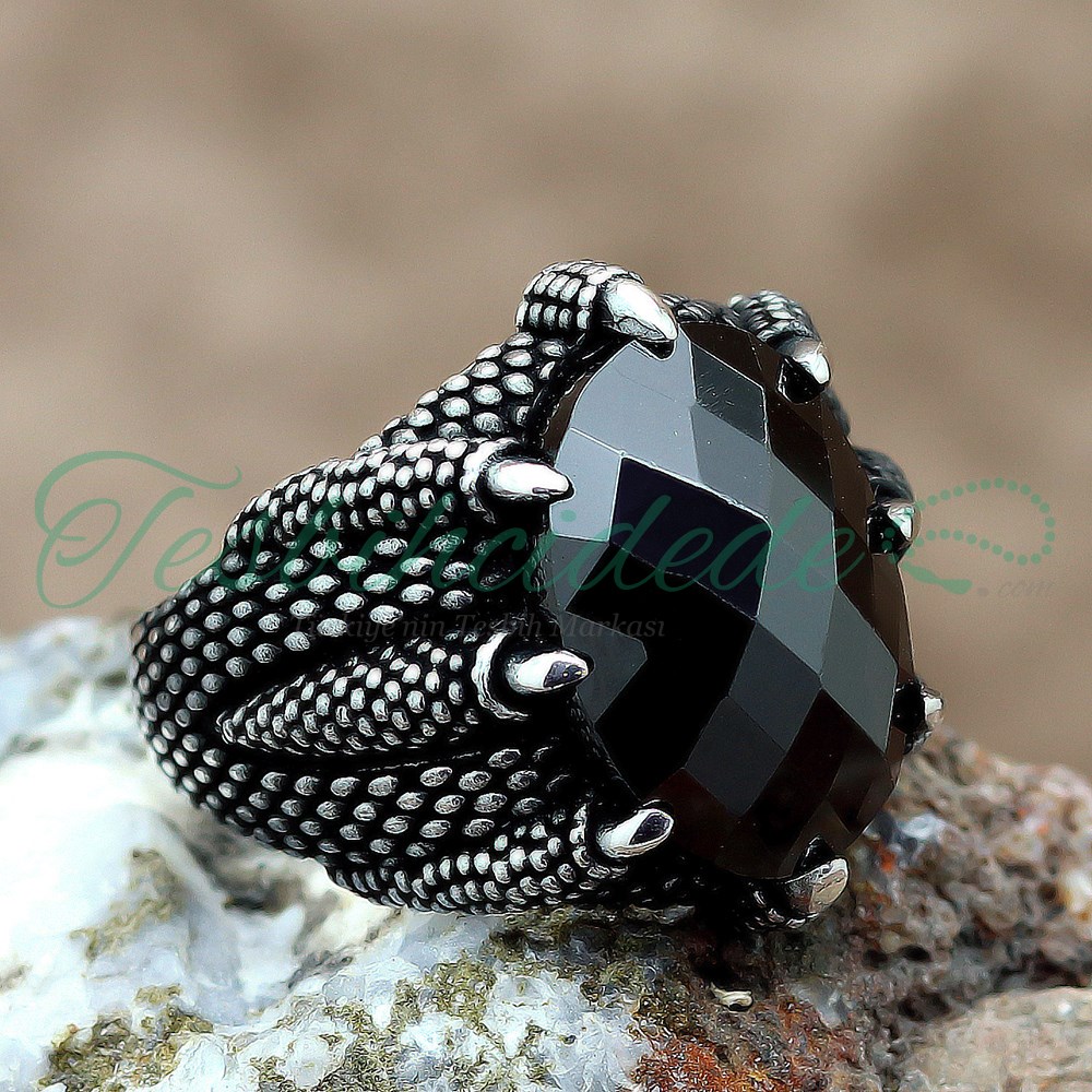 925 Ayar Gümüş Pençeli Zirkon Taşlı Erkek Yüzük |