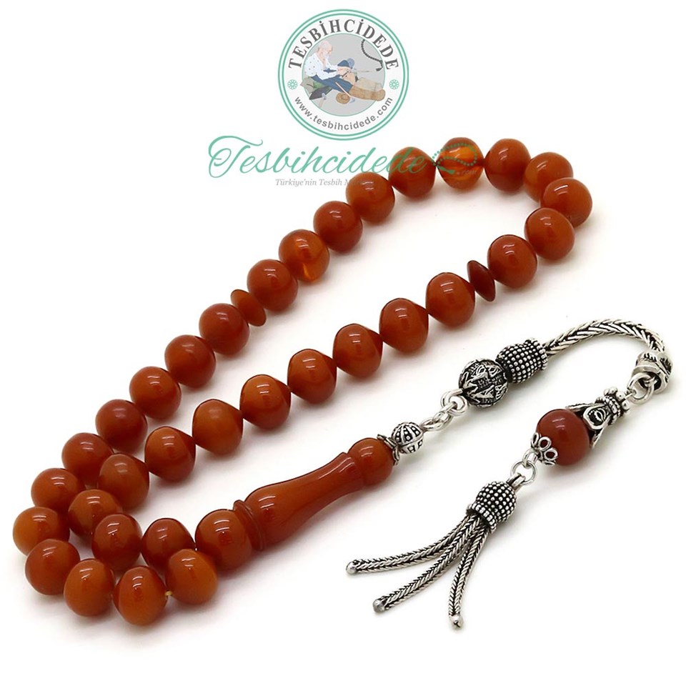 925 Ayar Gümüş Püsküllü Şalgam Kesim Sıkma Kehribar Tesbih |