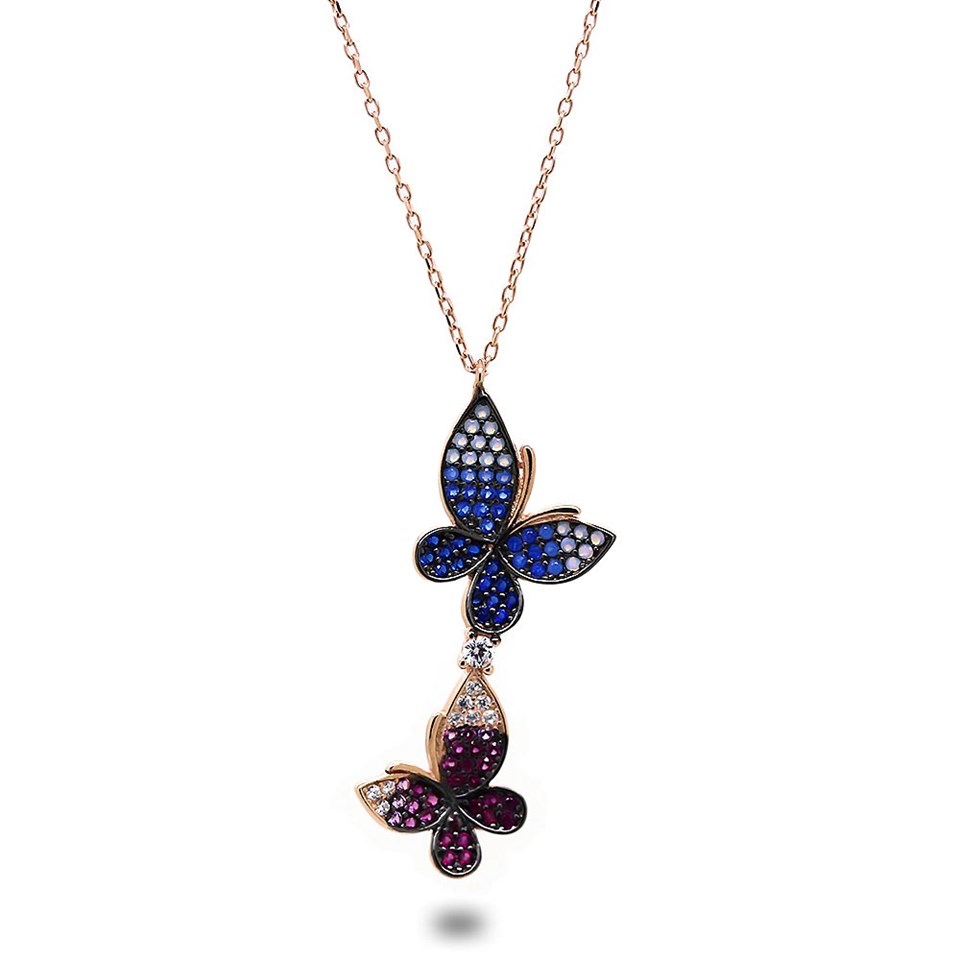 925 Ayar Gümüş Renkli Kelebek Hayalet Kolye |