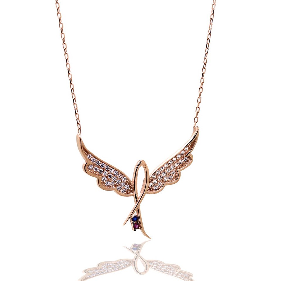 925 Ayar Gümüş Roze Kuş Hayalet Kolye |