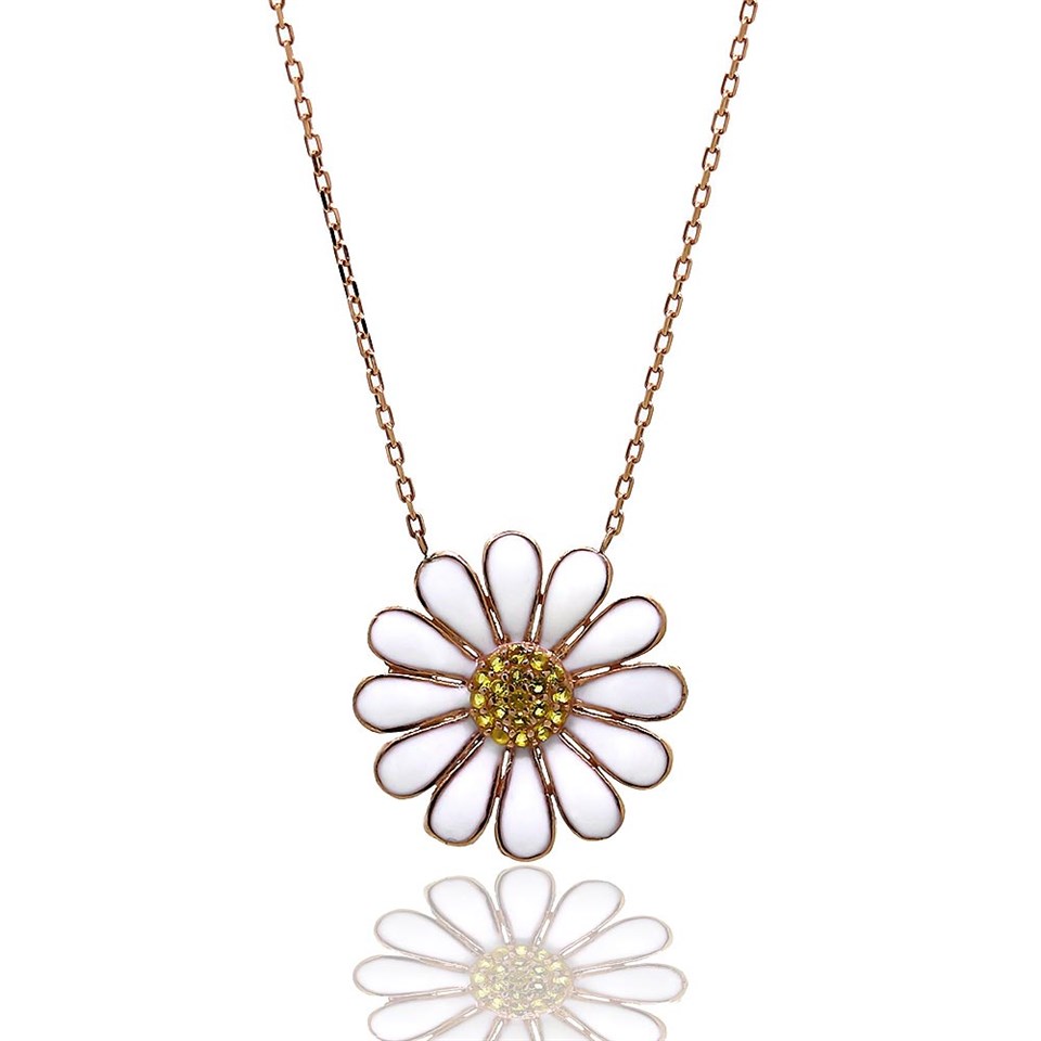 925 Ayar Gümüş Roze Papatya Hayalet Kolye |
