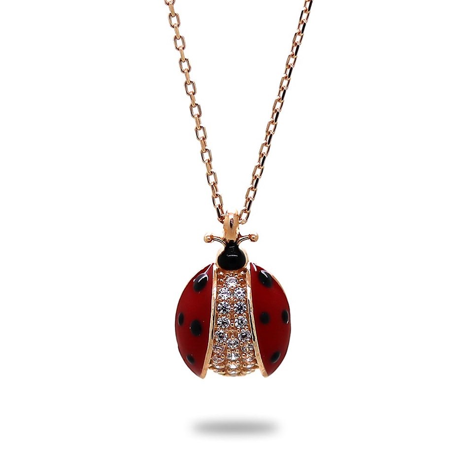 925 Ayar Gümüş Roze Uğur Böceği Hayalet Kolye |