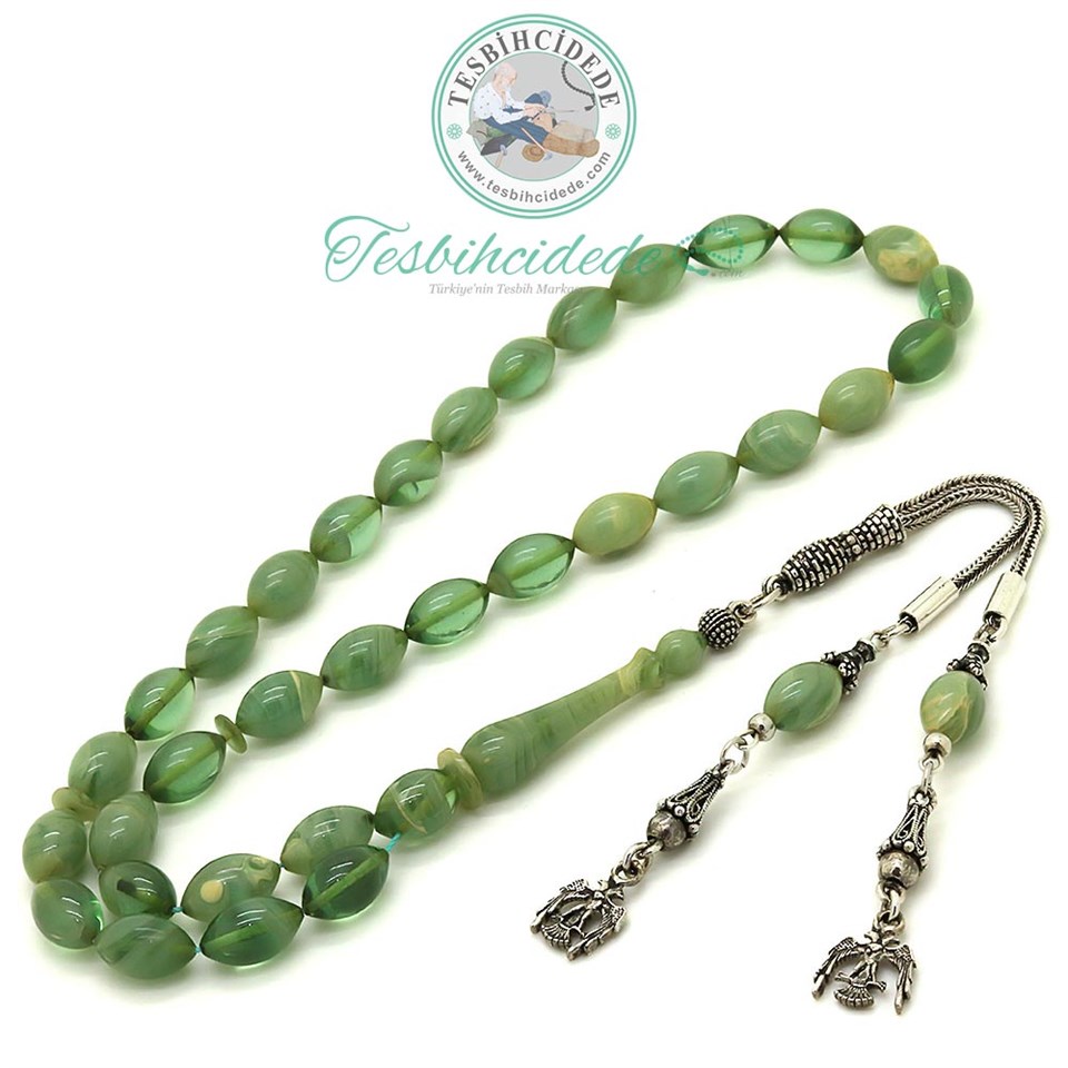 925 Ayar Gümüş Selçuklu Kartal Püsküllü Sıkma Kehribar Tesbih |