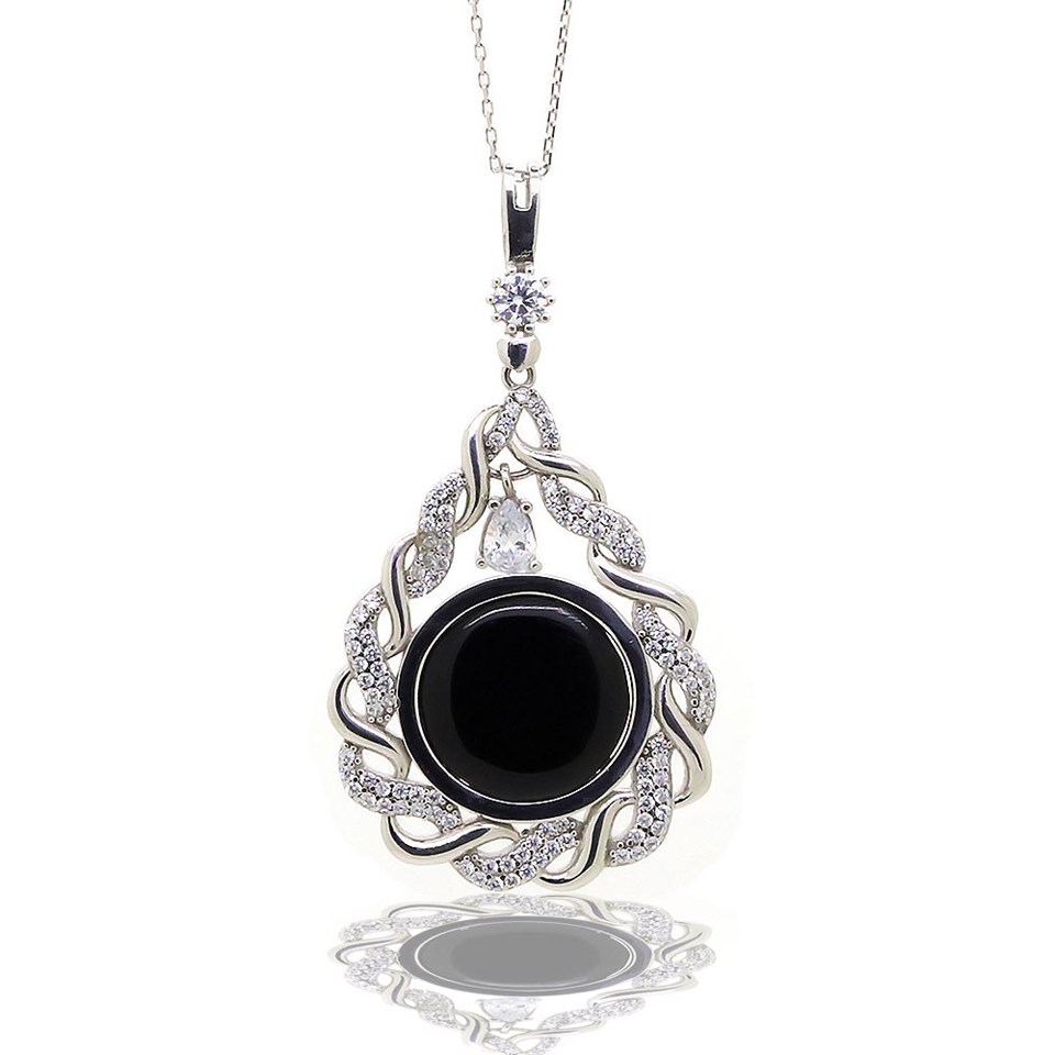 925 Ayar Gümüş Sonsuzluk Damla Model Oltu Taşı Kolye |