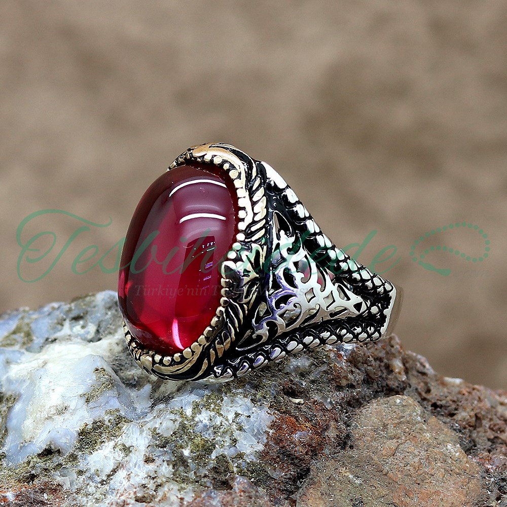 | Ürün Adı | 925 Ayar Gümüş Tasarım Kırmızı Lal Taşlı Erkek Yüzük |