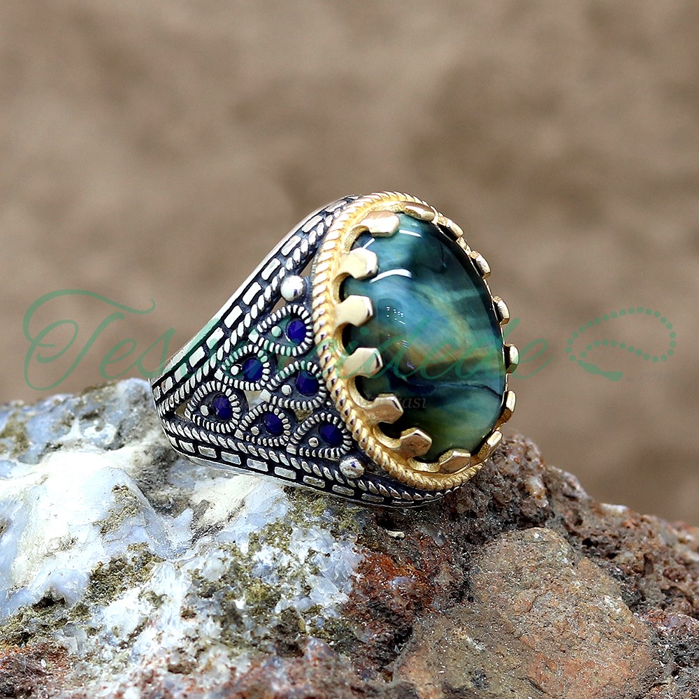 925 Ayar Gümüş Tasarım Labradorit Taşlı Erkek Yüzük |