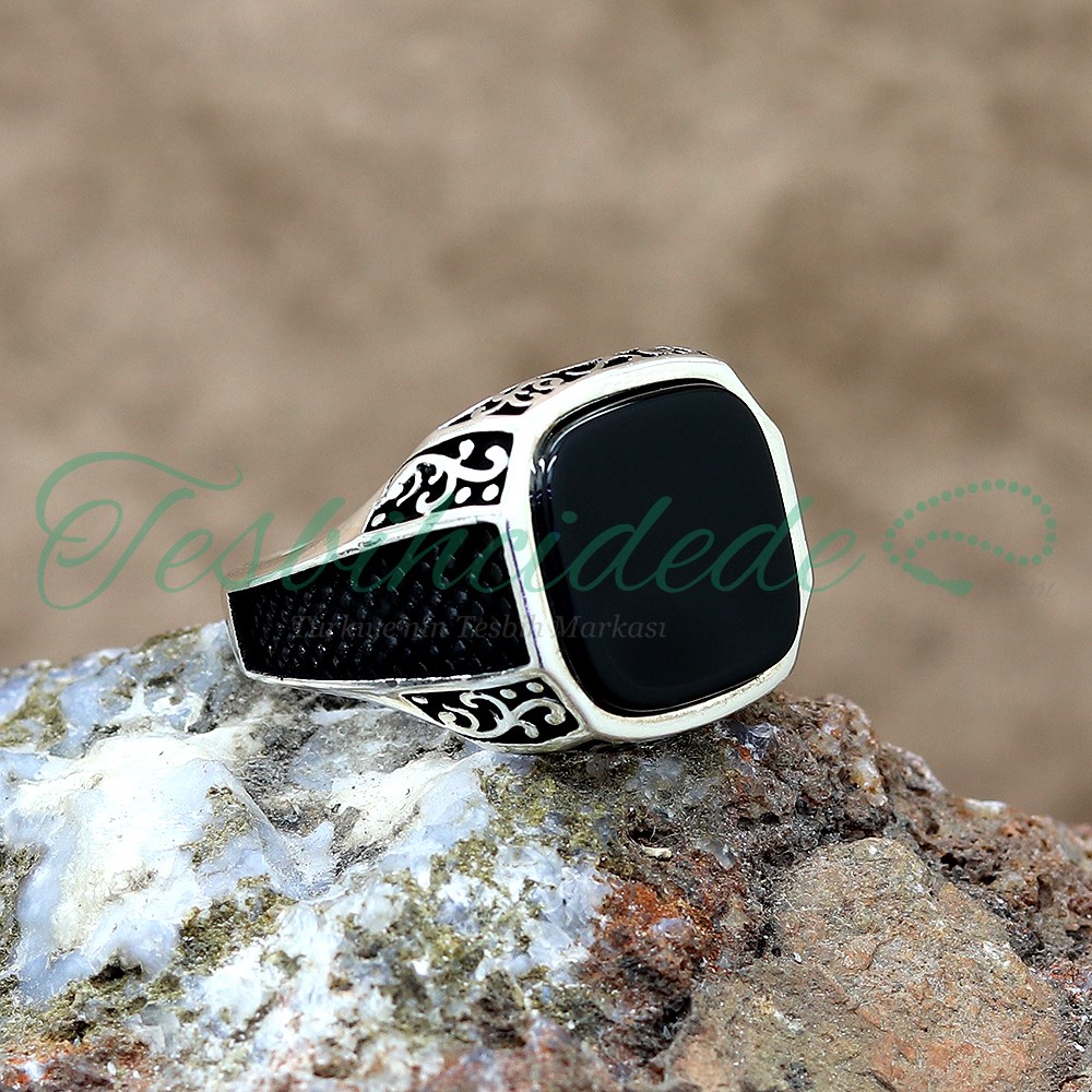 925 Ayar Gümüş Tasarım Oniks Taşlı Erkek Yüzük |