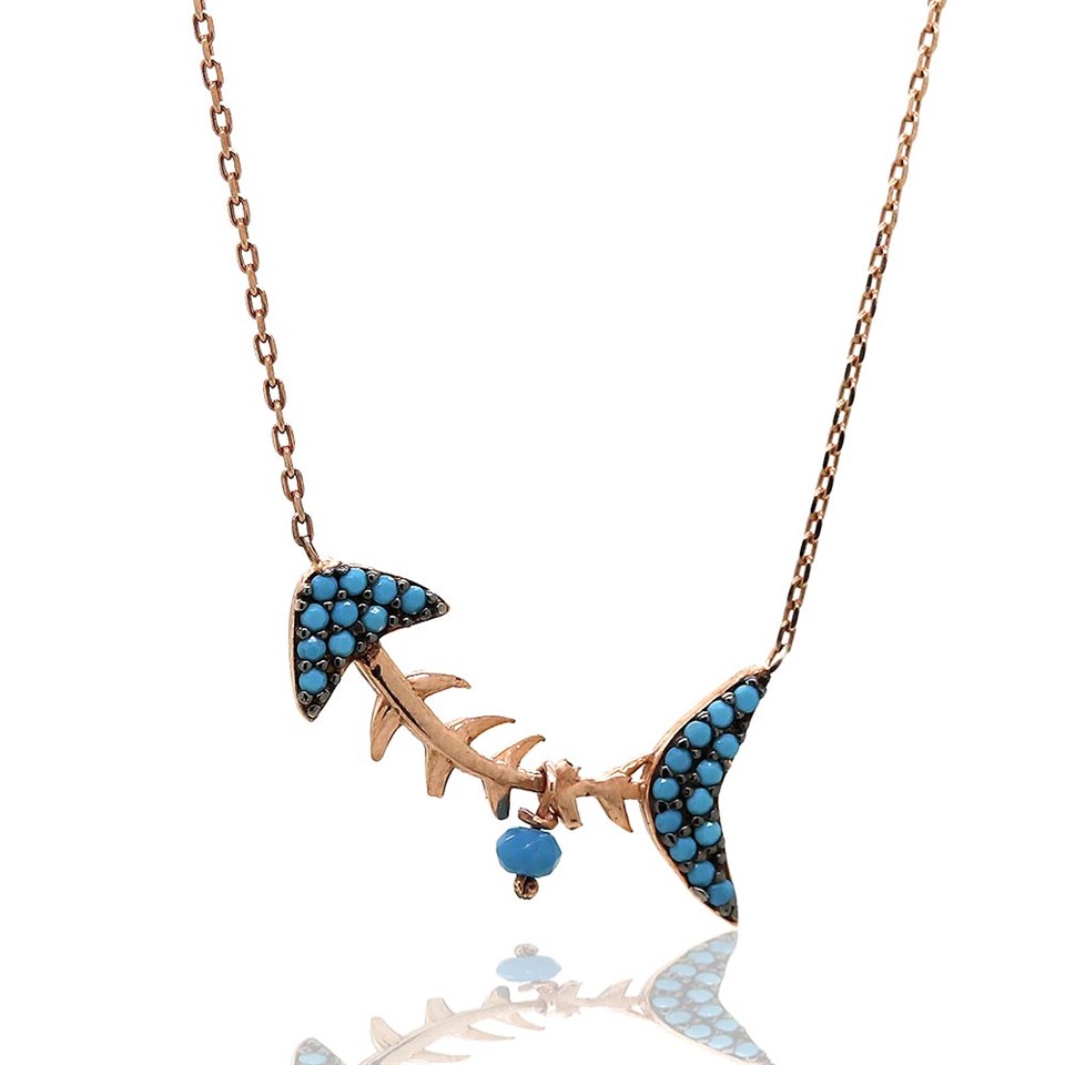925 Ayar Gümüş Turkuaz Taşlı Balık Kolye |